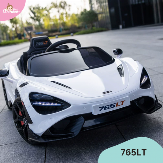 Mclaren 765LT Kids Electric Car Dimension : 113cm (L) x 69cm (W) x 43cm (H) Net weight 13kg Max load : 30kg (Actual tested weight is higher) Age suitability : 3-9 years old