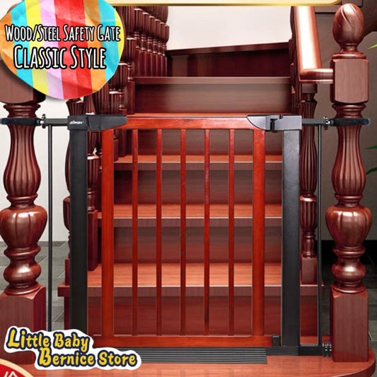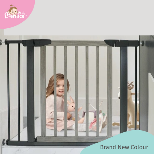 [TREND COLOUR] Black With Grey Pine Wood and Black Metal Baby Safety Gate / Pets Safety Gate