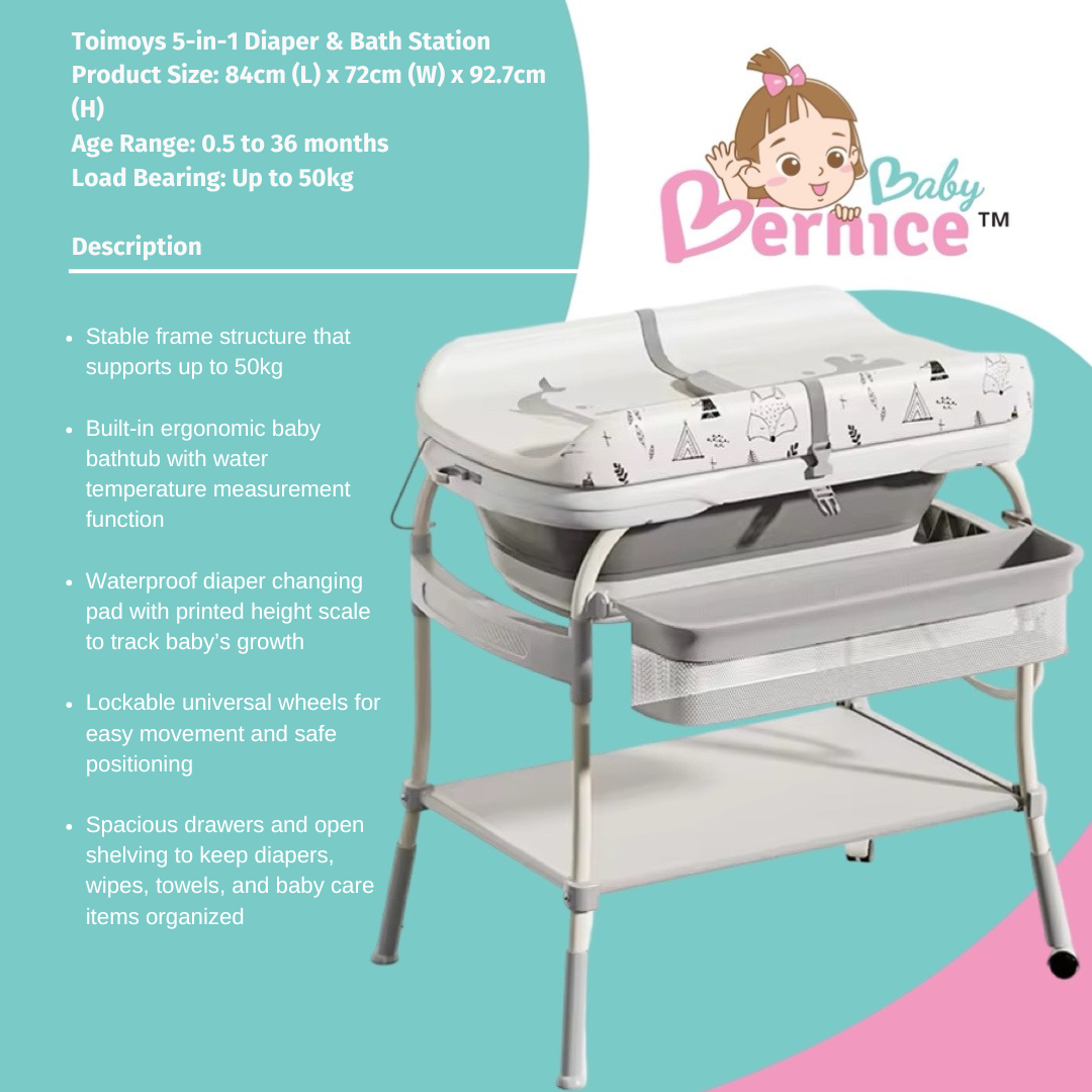 5-in-1 Diaper & Bath Station Diaper Cabinet | Changing Table | Baby Bathtub | Nursing Station | Storage Drawers