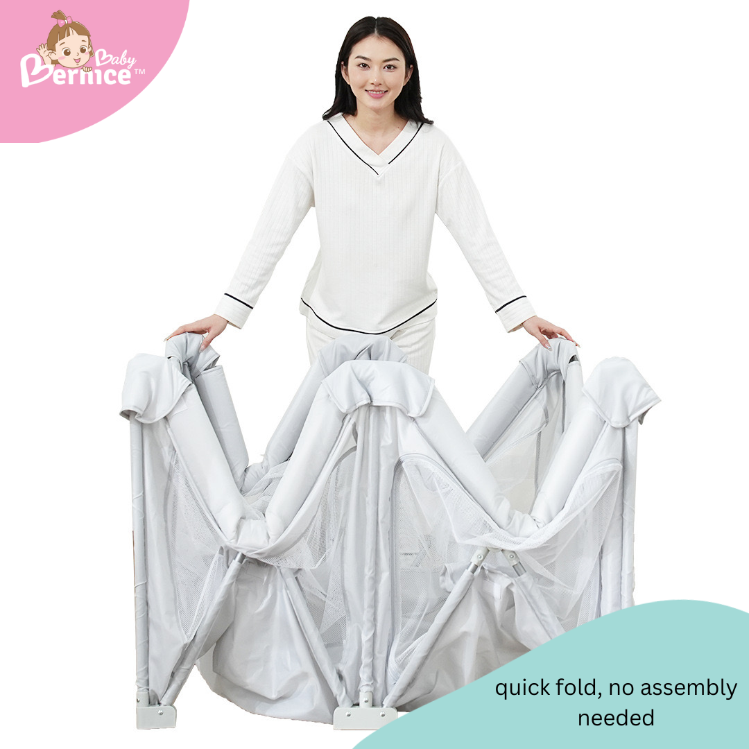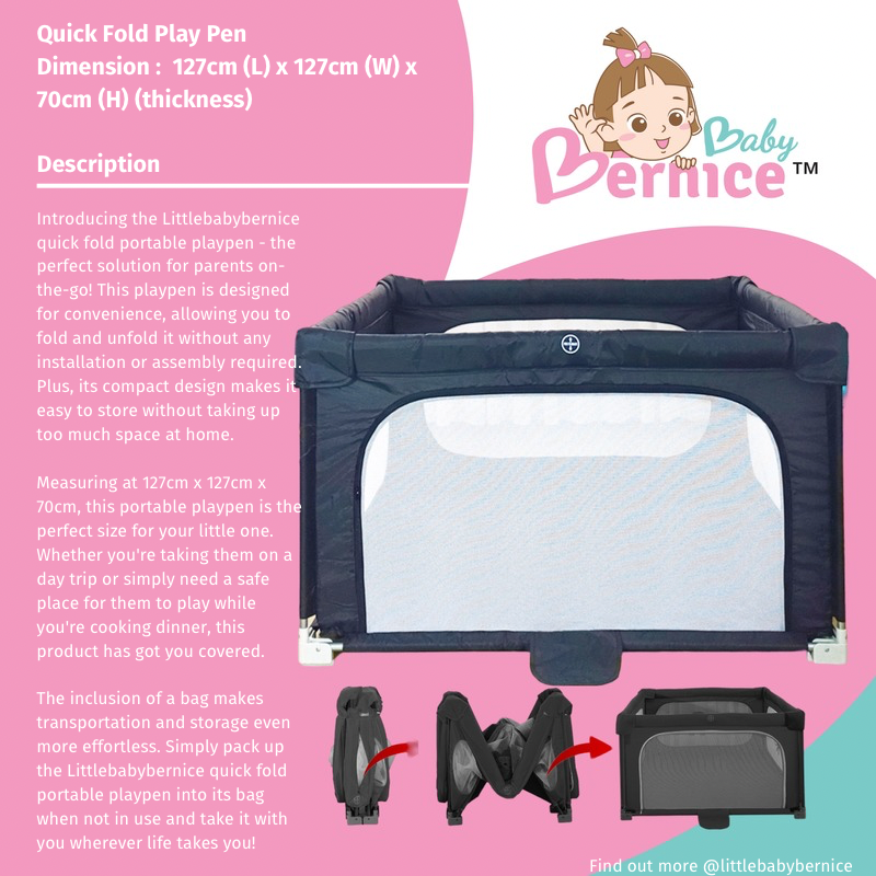 Introducing the Littlebabybernice quick fold portable playpen - the perfect solution for parents on-the-go! This playpen is designed for convenience, allowing you to fold and unfold it without any installation or assembly required. Plus, its compact design makes it easy to store without taking up too much space at home.