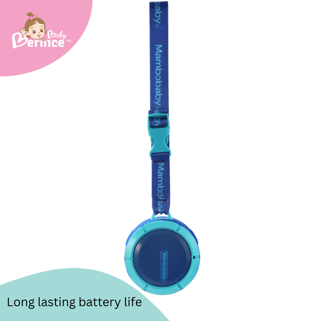 Powered by a 400mah in-built battery, this speaker is capable of playing music for hours and connect to Bluetooth at a wide distance of 10 meters . The included strap adds an extra layer of convenience by allowing you to carry the speaker or attach it to Mambobaby float!